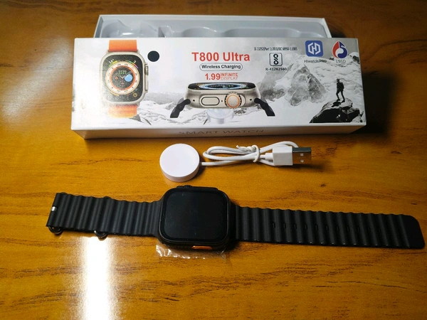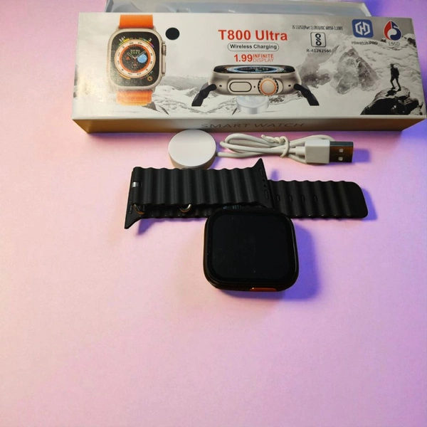 T800 Ultra Smart Watch with 1.99" Infinite Display, Wireless Charging & Sports Features – Black Strap