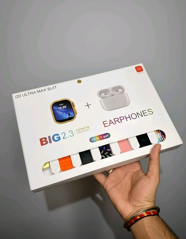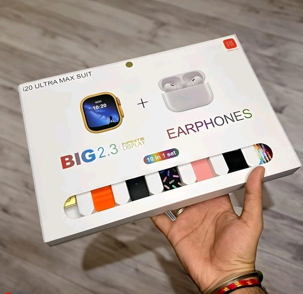 यह I20 Ultra Max Suit स्मार्टवॉच और वायरलेस ईयरफोन का 10-इन-1 कॉम्बो पैक है.